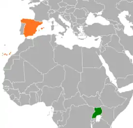 Испания поддерживает дипломатические отношения с Угандой с 13 сентября 1969 года. Двусторонние отношения тёплые, но не очень крепкие[4].