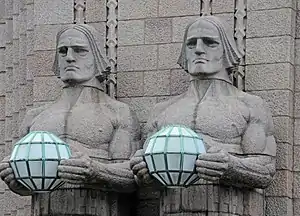 Исполины со светильниками (фин. Lyhdynkantajat) — рельефные гранитные изваяния мужских фигур с шаровидными фонарями в руках, попарно расположенные по обе стороны от центрального входа на Хельсинкский вокзал. Грудь каждого исполина весит 6 тонн, а голова — 1,4 тонны при диаметре около 1 метра[1].