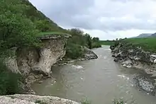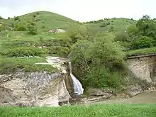 - Городище в балке Абрекской, недалеко от скалы Белая круча (южный склон скалы Монастырь). Открыто в 1971 году, позже обследовано в 1980 году, датируется VIII—XI веками. Размер поселения — 100 м на 300 м. Жилища на террасах по склону сложены из известняка. С напольной стороны селение окружено каменной стеной. В числе находок — жернова, сошник, остатки вооружения, инструментов, кости животных, керамика (фрагменты пифосов и др.). На территории находящегося рядом кобанского могильника остались гончарная печь IX—XI веков с остатками аланской керамики вокруг и железоделательная печь. Городище и могильник при нём с 1974 года обладают статусом памятников культурного наследия федерального значения (под официальными наименованиями Могильник «Белая круча—II» и Поселение «Белая круча», с датировкой — VIII—X века)[36].