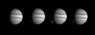 Вблизи Юпитера КА выполнил уточнение орбит внутренних спутников планеты, в частности Амальтеи. Камеры зонда запечатлели вулканическую активность на Ио, выполнили детальные съёмки всех четырёх Галилеевых спутников и сфотографировали с дальнего расстояния другие спутники (Гималия и Элара)[36]. Зонд также позволил изучить Малое красное пятно, магнитосферу и систему колец планеты[37].