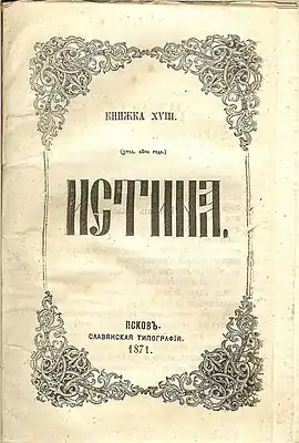 28 марта 1868 года типография была перевезена в город Псков[2], где стал издаваться и журнал Истина (по шесть книжек в год).