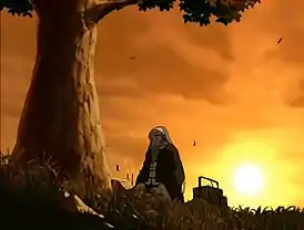 Вечером Айро поднимается на холм с деревом и поминает своего сына, который погиб при попытке захватить Ба-Синг-Се. Он просит прощения у сына за то, что не помог ему, плачет и снова поёт песню про солдата, возвращающегося с войны.