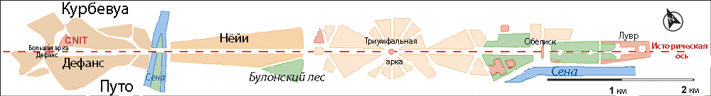 Историческая ось (фр. axe historique), проходящая из центра Парижа на северо-запад, представляет собой ряд памятников, зданий и улиц, находящихся на одной линии. Своё начало ось берёт у Лувра, а заканчивается Большой аркой в современном деловом квартале Дефанс. Другие названия оси — Триумфальный путь (фр. voie triomphale), Королевская перспектива (фр. perspective royale).