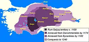 Со второй половины XI века территория Армении подверглась нашествию турок-сельджуков, армянское население начало покидать родные земли и эмигрировать в Грузию, на Северный Кавказ[20] и особенно в Киликию[21]. В 1071 году, после битвы под Манцикертом, сельджуками было создано первое государство — Султанат Рум, в который вошла вся Армения и внутренняя часть Анатолии. Это привело к усилению миграции армян в прибрежные области, особенно в Киликию и Ефратес[22]. В 1072 году курдская династия Шеддадидов получила от сельджуков в вассальное владение бывшее Анийское царство, образовав Анийский эмират. Таким образом с XI века на Армянском нагорье и в Закавказье начался многовековой процесс вытеснения армянского и курдского населения пришлым тюркским[23]. В закавказской Армении нападения сельджуков удалось избежать лишь Сюнику (Зангезуру) и Таширу[17].