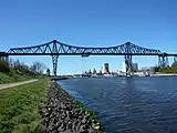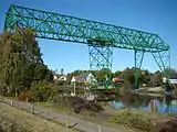| Ажурная металлическая конструкция летающего парома соединяет два берега реки Осте. Такое техническое решение обеспечивает проход по реке больших судов, но при этом втрое дешевле разводного моста. Гондола парома рассчитана на два автомобиля и 25 человек[8]. | |||||||