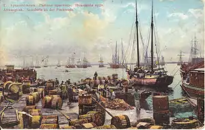 В конце XIX — начале XX века Архангельск превратился в крупнейший лесопромышленный и лесоэкспортный центр страны. В 1914 году в городе насчитывалось 26 лесопильных заводов, на которых работало 11 тысяч рабочих. Архангельск служил также важной базой для освоения Арктики и налаживания судоходства по Северному морскому пути. В 1908 году основано общество изучения Русского Севера (издавало «Известия…»). От причалов архангельского порта отправились свыше 200 полярных исследовательских экспедиций, в том числе В. Я. Чичагова, Ф. П. Литке, В. А. Русанова, П. К. Пахтусова, Г. Я. Седова.