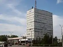 Самый высокий на Севере страны небоскрёб изначально был спроектирован как скульптура, здание строилось без определённой функции. Вопрос о количестве этажей решался в Москве. Было предложено снизить высоту до 16 этажей, но ведущие архитекторы поддержали идею авторов проекта, и проект был утверждён в том виде, в каком и был задуман. В 1990-х годах здание было превращено в офисное. В здании также размещается радиооборудование и студии большинства архангельских радиостанций.