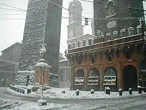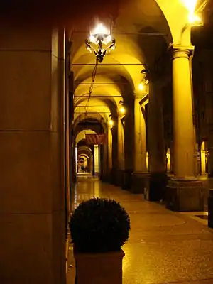В 1288 году был принят новый городской устав, который обязал жителей строить дома внутри третьего кольца городских стен и снабжать их портиками по фасадам, а также пристроить портики к тем домам, где их не было. Это решение привело к формированию облика Болоньи, где до настоящего времени насчитывается около 37 км этих характерных архитектурных деталей[24].