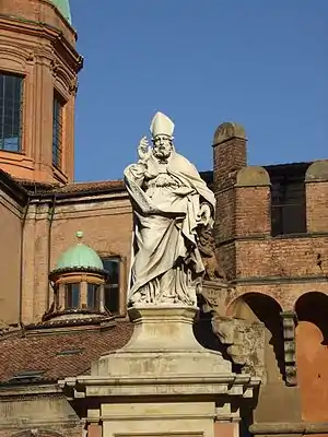 Очевидно, в 431 году церковь Болоньи, прежде находившаяся в подчинении Миланского епископа, перешла в юрисдикцию Равенны[31]. Около 432 года епископом Болоньи стал Петроний, который много позже был признан небесным покровителем города. Петроний происходил из знатной семьи, но обрёл широкую известность через шесть столетий после своей смерти в 451 году, когда некий монах написал его биографию. Имеющиеся сведения о деятельности Петрония в Болонье тесно переплетены с мифами, и судить о них сложно. Считается, что в 1141 году его мощи были обретены на территории церковного комплекса Санто-Стефано, строительство которого также принято связывать с его именем, хотя однозначных доказательств того и другого факта не существует[32].
