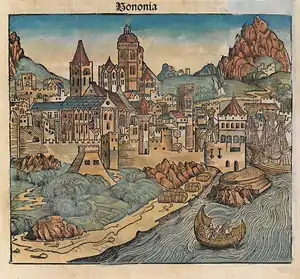 Болонья — административный центр провинции Болонья и региона Эмилия-Романья в Италии. В силу выгодного географического положения и благоприятных климатических условий эта местность издавна населена — возраст древнейших стоянок доисторического человека оценивается примерно в 850 000 лет, то есть они относятся к эпохе палеолита. Период неолита представлен так называемой культурой Фьорано, а также керамикой культуры импрессо, культуры сосудов с квадратным горлом и шассейской культуры. В окрестностях современной Болоньи также обнаружены остатки плавильных печей бронзового века; крупные стоянки этого времени обнаружены археологом Антонио Дзаннони в период с 1872 по 1885 год. Между 1907 и 1917 годом Эдоардо Брицио и Раффаэле Петтаццони сделали важные археологические находки бронзового века на территории самого города, в районе ворот Сарагоцца[1]. Стоянки «культуры Вилланова» в Болонье относятся к железному веку, с VII в. до н. э. первым городом здесь стала этрусская Фельсина, позднее этрусков сменило кельтское племя бойев, а во II в. до н. э. город стал римской колонией под названием Бонония. После падения Западной Римской империи в 476 году Болонья переходила от одного средневекового королевства к другому, но вплоть до объединения Италии в 1861 году большую часть времени, исключая короткий республиканский период времён Наполеоновских войн, она поочерёдно принадлежала Священной Римской империи и Папской области (правда, в XIV-XV веках полномочия Святого Престола оспаривались городским самоуправлением).