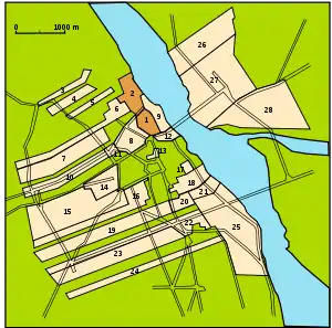 | 1. Старый город 2. Новый город 3. Шимановская 4. Виеладка 5. Парисовска 6. Свитоерска 7. Новолипие 8. Капитульна 9. Дзиекания 10. Лешноo 11. Тлумаке 12. Мариенштадт 13. Дзиеканка 14. Виелополе |