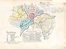 Первое укрупнение города потребовало разделения городской территории на районы. Так прежние городские земли вместе с большей частью гласиса образовали I район, предместья распределили по остальным восьми районам.