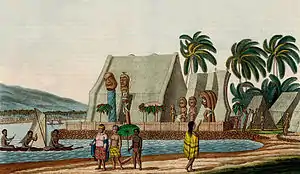 Капитан Кук выходил на берег три раза, и каждый раз местные жители падали ничком в его присутствии, как будто Кук был их богом. Корабль посетила молодая пара, вероятно, король и королева острова, принёсшие с собой дары.