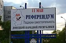 10 апреля 2014 года ДНР начала формировать ЦИК для проведения референдума о статусе региона[144]. 15 апреля был определён состав ЦИК, члены комиссии совместно с органами местного самоуправления приступили к составлению списков жителей, имеющих право голосовать, готовят окружные комиссии и наблюдателей[145].