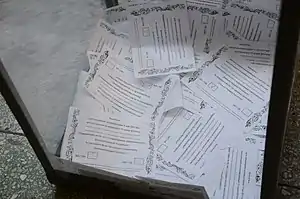 8 мая более миллиона бюллетеней для референдума были уничтожены в результате нападения на две типографии, где они печатались. По сообщениям российских СМИ, на нападавших были отличительные повязки «Правого сектора»[150]. В этот же день сторонники федерализации отказались переносить дату референдума, и, по сообщениям «Украинской правды», в Донецке уже начали раздавать местным жителям бюллетени для голосования, не имеющие никаких средств защиты от подделки[151].