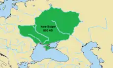 В начале VII века хан Кубрат сумел собрать под своей рукой булгарские племена утигуров и кутригуров и создать достаточно мощное государство — Великую Булгарию, которая занимала юго-восток современной Украины и Северный Кавказ. Кубрат умер в октябре 668 года, а через несколько лет на Булгарию напали хазары[11].