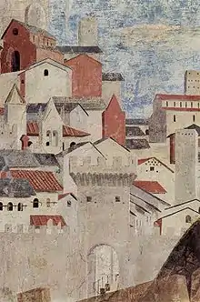 «В замысле росписей Пьеро делла Франческа в Ареццо содержится важное новшество. В отличие от циклов фресок средневековья и ранней поры Возрождения, требовавших от посетителя постепенного обхода помещения для их последовательного рассматривания, живопись капеллы в Ареццо с её четким симметричным построением и выделением узловых моментов повествования предусматривает единовременное обозрение ансамбля. Подобная организация росписей получит дальнейшее развитие в период Высокого Возрождения, наилучшим образом согласуясь с центрическим характером ренессансной архитектуры»[7].