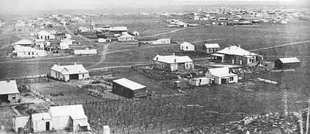 После Великого трека европейские животноводы начали селиться в Трансваале. Некоторые из них заселили земли, на которых впоследствии вырос Йоханнесбург. Каждый поселенец получил по меньшей мере одну ферму размером около 3100 акров. В феврале 1886 года фермер Джордж Харрисон обнаружил самородки золота на ферме Ланглаагте[2]. 12 мая 1886 года Харрисон и его партнер, Джордж Уокер, заключили соглашение о геологоразведке с владельцем фермы Ланглаагте, неким Г. К. Остхёйзеном. Через два дня полковник Игнатиус Феррейра разбил свой лагерь на ферме Турффонтейн, ставший базой для землеройных машин[3]. Лоуренс Гелденхёйс обнаружил обнажение золотоносного рифа на ферме Турффонтейн, а Генри Норс — на ферме Дорнфонтейн[3]. 8 сентября 1886 года девять ферм, от Дрифонтейна на востоке до Родепорта на западе, были объявлены общественными участками для золотодобычи[4]. Карл фон Брандис был назначен горным комиссаром области. 8 ноября 1886 года был избран комитет старателей[5].