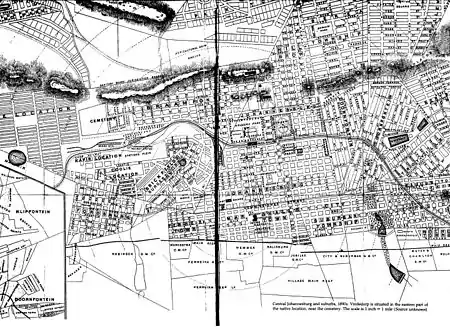 К западу от Дорнфонтейна расположился Браамфонтейн, где жили белые поселенцы с семьями и одинокие белые мужчины[18].