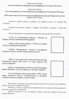 - Общекрымский референдум 20 января 1991 г. Нереализован, а выраженная на нём народа Крыма — попрана