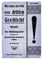 В 1919 году Магнусом Хиршфельдом в Берлинском районе Тиргартен был основан Институт сексуальных наук, плотно сотрудничающий с Научно-гуманитарным комитетом, который перемещается в Институт и образует в нём «Отдел сексуальных реформ»[27][36]. Институт активно контактировал в своих исследованиях с гомосексуалами и трансгендерами. В исследованиях Института гомосексуалы рассматривались как представители третьего пола наряду с мужчинами и женщинами, поэтому они не должны быть преследуемы из-за наличия у них определённого врождённого качества[37].