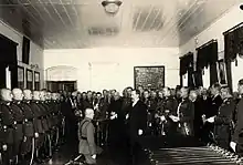 Получив советский ультиматум, президент Литвы А. Сметона настаивал на сопротивлении Красной Армии и отводе литовских войск в Восточную Пруссию, но главнокомандующий Литовской армией генерал В. Виткаускас отказался это сделать. Большинство членов правительства также высказалось за принятие ультиматума СССР, после чего Сметона покинул страну. 15 июня ультиматум был принят[34] и генерал Виткаускас приказал соблюдать все правила вежливости и выражать дружественные чувства по отношению к вступающим советским войскам. В Литву вошли дополнительные советские воинские части и было сформировано Народное правительство. 19 июня в Литве были запрещены все политические партии и организации[35].