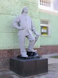 Скульптура шахтёра у здания ПНИУИ на площади Советская.