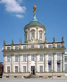 Отношение социалистического правительства к наследию Пруссии носило двойственный характер. С одной стороны, признавались культурные и художественные заслуги. Портреты прусского архитектора Карла Фридриха Шинкеля и государственного деятеля Вильгельма фон Гумбольдта украсили первые памятные монеты ГДР. Однако многочисленные архитектурные творения считались отражением милитаризма и преимущественно шли под снос. Так была навсегда утеряна историческая застройка многих улиц; исключение составляет сохранившаяся поныне улица Вильгельма Штааба (нем. Wilhelm-Staab-Straße). В первые послевоенные годы новые здания возводились в соответствии со стилем города, однако позднее в целях экономии преимущественно строились более дешёвые панельные дома, как, например, в новых кварталах на юге города: Шлаац, Вальдштадт и Древиц.