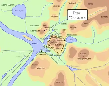 Несомненно, что центром Рима был Палатинский холм и обе его вершины Палатий и Цермал; к нему ведут как все легенды о начале Рима, так и положение холма в центре римской системы холмов и его конфигурация, делавшая его наиболее недоступным. Несомненно, однако, и то, что Рим был не единственной общиной, существовавшей, в отдалённой древности, в пределах нынешнего города. На противоположном Палатину Квиринале издавна жила другая община, может быть, другой национальности. Существовали ли отдельные общины и на других холмах — сказать невозможно. Литературное предание сохранило, основываясь на религиозных обрядах, сохранившихся от древнейшего времени (в историческое время жреческая коллегия luperci — волчатники — обегала кругом древний палатинский город), точные данные о сакральной границе палатинского города (pomerium); монументальное предание указывает ход действительных укреплений. Сакральная граница шла у подножия Палатина.
