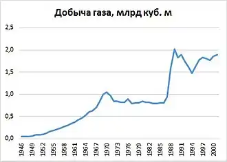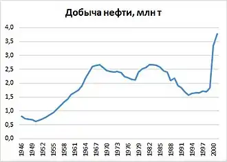 В данный период наблюдался быстрый рост нефтяной отрасли. В ходе крупномасштабных геологоразведочных и буровых работ были открыты нефтяные месторождения Тунгор и Колендо. Началось применение вторичных методов добычи нефти. Это позволило нарастить ежегодную добычу нефти за 1953—1964 годы почти в три раза, с 800 тысяч до 2,2 млн тонн[26].