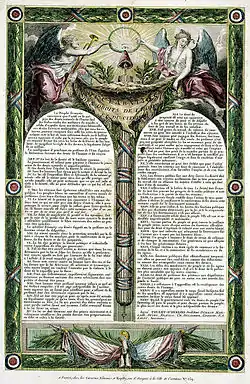 26 августа 1789 года Национальное собрание официально провозгласило Декларацию прав человека и гражданина. Подобно Декларации независимости США, она содержала изложение принципов и не была имеющей юридическое значение конституцией. Национальное собрание упразднило деление страны на исторические провинции, создав взамен 83 департамента, имеющих примерно одинаковую территорию и численность населения, а также единообразное управление; также были упразднены атрибуты и символика Старого порядка — геральдические фигуры, отличительные знаки, убранство и т. д. — что вызвало отвращение еще большего числа представителей консервативного дворянства и побудило их к эмиграции.