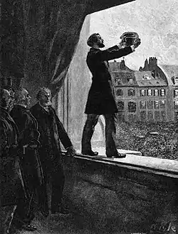 Коммуна начала своё существование с восстания парижан вскоре после блокады Парижа в сентябре 1870 года; она существовала с 18 марта 1871 года по 28 мая 1871 года. Адольф Тьер вызвал гнев горожан, разрешив прусской армии устроить военный парад в Париже 17 февраля 1871 года, а 18 марта, надеясь укрепить влияние своего правительства и ослабить позиции командования Национальной гвардии, он приказал французским регулярным войскам захватить артиллерийские орудия, размещённые на Монмартре. Множество французских солдат поддержали Национальную гвардию и отказались выполнять приказ, присоединившись вместе с гвардейцами к восстанию. Видя, что он теряет контроль над ситуацией, Тьер вывел из Парижа регулярные войска, силы полиции и чиновников в Версаль, и сам покинул город в сопровождении верных ему сторонников.