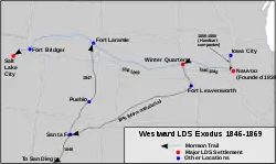 Под руководством Бригама Янга, руководители церкви планировали оставить Наву, штат Иллинойс в апреле 1846 года, но из-за угроз со стороны ополчения штата, они были вынуждены пересечь реку Миссисипи в холодном феврале. В конечном итоге они покинули границы тогдашних Соединённых Штатов, и переселились на территорию, позже ставшую штатом Юта, где основали город Солт-Лейк-Сити.