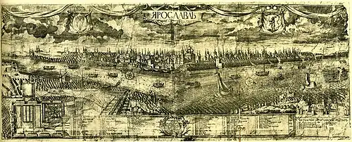 Ярославль быстро отошёл от последствий Смуты. Он развился в крупный торговый и ремесленный центр. Если в 1614 году было около 900 населённых дворов, то к середине XVII века их было уже 2 тысячи и в них проживало 15 тысяч человек — больше тогда было только в Москве, по описи же 1678 года в городе насчитывалось уже 2936 дворов.[33]