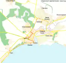 - Центр — Завод имени Ильича (по улице Артёма, Ивана Франко — современный проспект Металлургов, улице Весёлой — современный проспект Металлургов в районе плавбассейна «Нептун», проспекту Ильича до Ильичёвского рынка, который был на 1 остановку ближе);