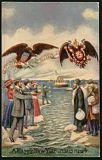История евреев в Соединённых Штатах Америки — до 1830-х годов еврейская община Чарльстона (Южная Каролина) была самой многочисленной в Северной Америке. В конце XVIII и начале XIX веков многие еврейские иммигранты покинули свои страны и стали частью общего иммиграционного движения. К примеру, большая часть немецких евреев, прибыв в середине XIX века, открыли магазины одежды в различных городах страны и активно участвовали в банковском деле Нью-Йорка. Иммиграция восточных, говорящих на идиш, евреев-ашкенази в 1880—1914 годах привнесла свои традиционные элементы в жизнь Нью-Йорка. Они были консервативны и религиозны. Прибыв в Америку, иммигранты основали сионистское движение в Соединённых Штатах, были активными сторонниками Социалистической партии и выступали за усиление роли профсоюзов.
