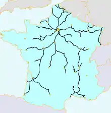 Схема железнодорожной сети Франции на 1860