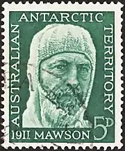 ![]() Ранняя почтовая марка Австралийской антарктической территории с портретом австралийского исследователя Антарктики Д. Моусона, 1961 (Mi #7; Yt #7; Sc #7) | |
