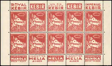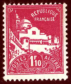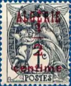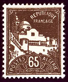 ![]() Первая почтовая марка для использования в Алжире, из серии «Блан», с надпечаткой «Algérie» («Алжир»), 1924 (Sc #1?)[^] | |