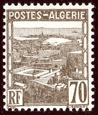 В течение следующей пары лет в общей сложности появилось около 32 типов надпечатанных знаков почтовой оплаты. На смену им в 1926 году пришли первые оригинальные почтовые марки непосредственно с надписью «Algérie» («Алжир»)[2]. Эта стандартная серия состояла из изготовленных типографским способом марок с изображением четырёх местных видов и в конечном счёте насчитывала 35 типов, номиналом от 1 сантима до 20 франков.