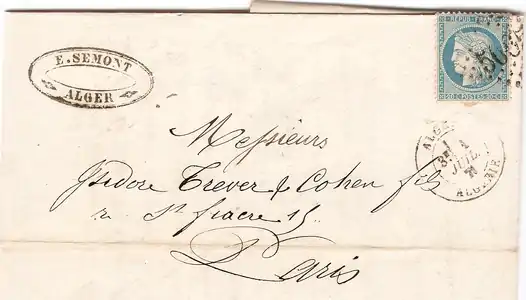 - Ранние почтовые отправления из Алжира во Францию (XIX век)