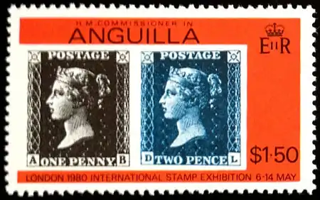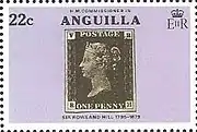 ![]() Почтовая марка Ангильи к столетию со дня смерти Р. Хилла, номиналом в 22 цента, с изображением «Чёрного пенни» (по типу «марка на марке»), 1979 (Sc #?) | |