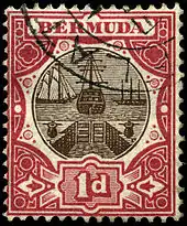 ![]() Первая почтовая марка Бермудских Островов номиналом в 1 пенни, 1865 (Sc #?)[^] | |