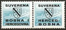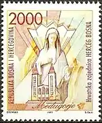 12 мая 1993 года был выпущен первый выпуск почтовых марок Хорватской почты в Мостаре. На марке изображена статуя Девы Марии и церковь в Меджугорье. Номинал — 2000 хорватских динаров. В районах, контролируемых Хорватским советом обороны (Герцеговина, Центральная Босния и Боснийская Посавина), в обращении с 1992 года был хорватский динар. В то же время продолжали использоваться почтовые марки бывшей Югославии с надпечаткой «Suverena Bosna i Hercegovina» («Суверенная Босния и Герцеговина») или «Suverena Herceg-Bosna» («Суверенная Герцег-Босна»). С 1993 года по наше время надписи на почтовых марках этой территории изменялись следующим образом: