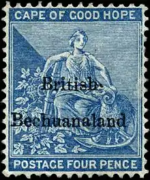 В декабре 1888 года на марках номиналом 3 пенса 1887 года выпуска была сделана надпечатка англ. «One Half-Penny» («Полпенни»), а в январе 1889 года на почтовых марках Мыса Доброй Надежды номиналом ½ пенни была выполнена надпечатка «British Bechuanaland» («Британский Бечуаналенд») в местной типографии во Фрейбурге.