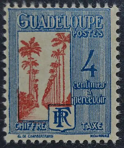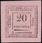 ![]() Доплатная марка Гваделупы (1884)[^] | |