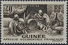 Почтовые марки выпускались для Французской Гвинеи, пока в 1943 году их не заменили марки Французской Западной Африки[4]. В период между 1944 годом и обретением независимости в 1958 году во Французской Гвинее в обращении были почтовые марки Французской Западной Африки[4][5].