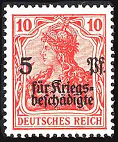 Во время Первой мировой войны власти Германии выпускали почтовые марки в оккупированных Германией странах: в Бельгии, Польше, Румынии, а также в некоторых районах западного и восточного фронта[13].