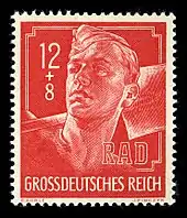 Во времена нацистской Германии (1933—1945) «Рейхспочта» продолжала функционировать как государственная монополия под эгидой Имперского министерства почты, при этом на дизайн почтовых марок и на программу выпуска марок сильное влияние оказывала национал-социалистическая пропаганда. Повсеместно используемыми почтовыми марками стали миниатюры с изображением головы Гитлера, было эмитировано большое количество почтово-благотворительных марок. В последний год перед окончанием войны надпись на почтовых марках «Deutsches Reich» («Германская империя») была изменена на «Grossdeutsches Reich» («Великая Германская империя»). Начиная с 1942 года, для войск выпускались марки военно-полевой почты. 25 июля 1941 года была введена первая в мире система почтовых индексов из двух цифр[20]. Эта система вначале использовалась для посылок, а затем была распространена на все почтовые отправления.