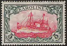 На раннем этапе (около 1887 или 1888 года) почтовый сбор оплачивался обычными почтовыми марками Германии того периода, поэтому опознать марки, прошедшие почту в германских колониях, можно только по оттиску почтового штемпеля соответствующего почтового отделения. Такие марки известны как «Vorläufer» («предшественницы»)[11]. На следующем этапе использовались обычные почтовые марки с надпечаткой названия территории. В целом, к 1896 году и позднее марки с надпечатками были выпущены германскими властями для всех колоний: Германская Юго-Западная Африка, Германская Новая Гвинея, Киау-Чау (Kiautschou), Того, Самоа, Маршалловы Острова, Марианские острова, Каролинские острова, Германская Восточная Африка и Камерун. Примерно к 1900 году для различных колониальных территорий была эмитирована серия «Яхта „Гогенцоллерн“» с одинаковым рисунком — изображением одноимённого имперского судна. После утраты Германией своих колоний в ходе Первой мировой войны надпечатанные марки с изображением яхты временно использовались новыми хозяевами колоний.